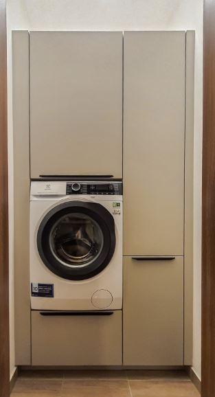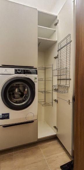 Ennél a lakásnál a konyha, az étkező, a nappali, a hálószoba, az előszoba, a fürdő és a home office lehetőség minden bútora egyedi koncepció mentén született meg.