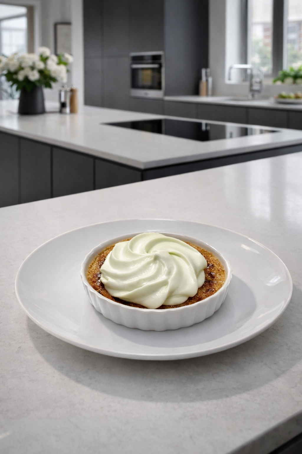 Kivesszük, hűlni hagyjuk. Tálalás előtt a tetejét barna cukorral megszórjuk. Konyhai karamellizálóval (zsebsárkány) aranybarnára karamellizáljuk.