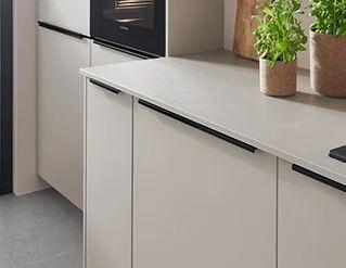 A meleg homok árnyalat és a finom, kerámiahatású textúra természetes megjelenést és élénk, mégis kifinomult dinamikát kölcsönöz a designnak. Az új Slim Line dekor texturált homok árnyalatban, valamint a Wood-Art Como tölgyfa fiókos paneljei a szín és a felület harmonikus összhangját emelik ki, így minden részlet a tökéletesen koordinált összképet támogatja.